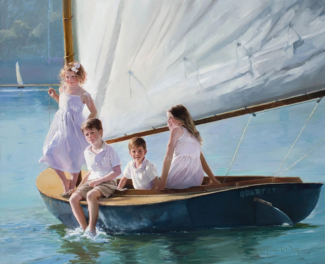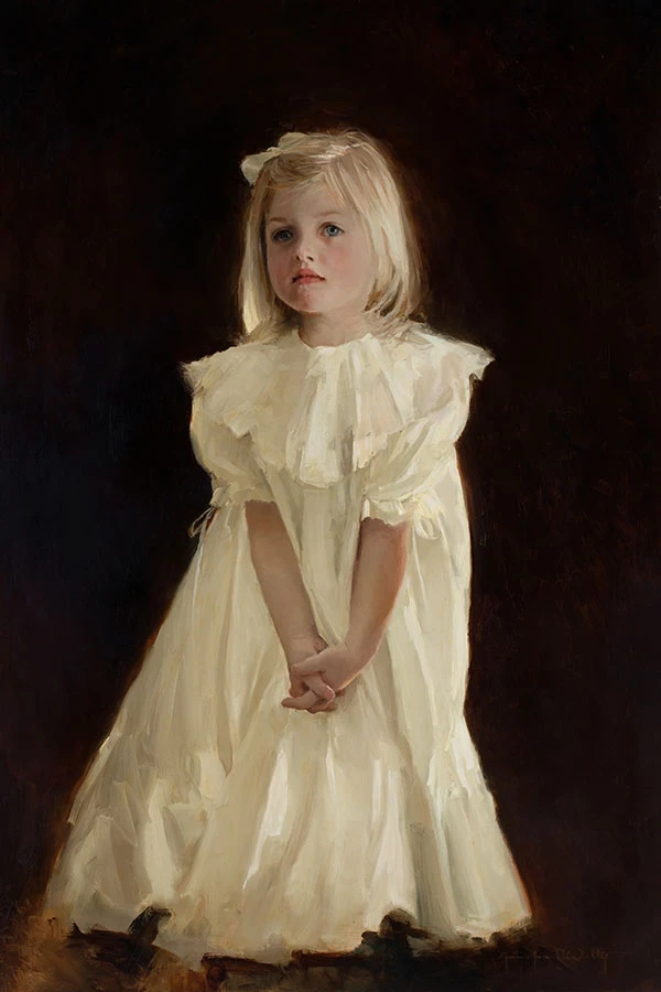 Born in the fast-paced, high-tech heart of Silicon Valley in 1958, Jennifer R. Welty grew up wanting to capture a sense of timelessness in her work. Beauty, family, integrity, character, the reward of hard work, and discipline are values she tries to honor through her paintings. Jennifer graduated Valedictorian with a degree in interior design from International Fine Arts College in Miami, Florida, but she is largely self-taught in the field of portraiture. With no formal instruction in painting, she taught herself to paint by copying great masterworks, practicing on friends and family, and drawing endlessly.