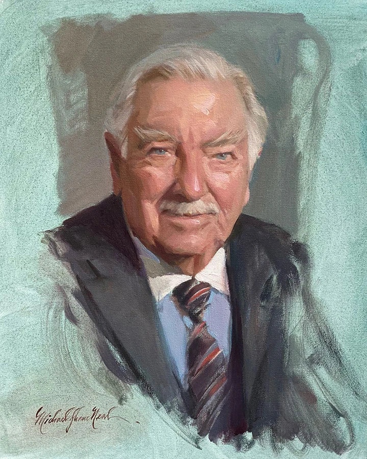 Michael Shane Neal (b. 1968) is a distinguished American portrait artist known for his exceptional skill in traditional oil painting and his ability to capture the essence and character of his subjects. Neal has built an international reputation for his realistic and emotive portraits, often focusing on notable figures, including politicians, military leaders, and cultural icons. His artistic style is heavily influenced by the techniques of the Old Masters, emphasizing the use of light, shadow, and rich color palettes to create depth and lifelike portraits. Neal is an influential figure in the art community, celebrated for his commitment to the craft of portraiture and his ability to tell compelling stories through his paintings.