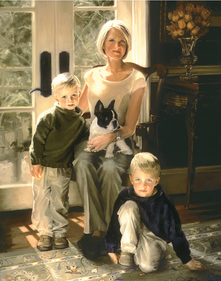 When I begin a family portrait, I am always pondering the solution to the question, “How can I paint a piece of art that will stand the test of time, look beautiful with their furnishings AND portray the family members in a true and pleasing manner?